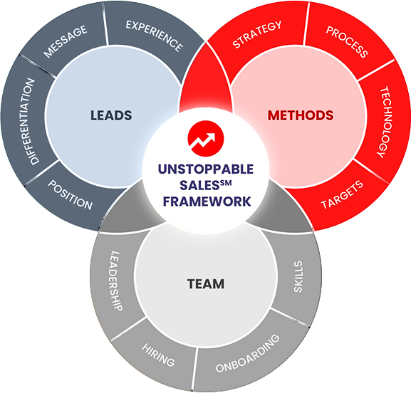 The Unstoppable Sales℠ System is a complete sales acceleration framework that addresses every critical component of high-performance selling. Whether you’re looking to optimize your sales process, enhance lead generation, or build a world-class sales team, our systematic approach delivers measurable results.